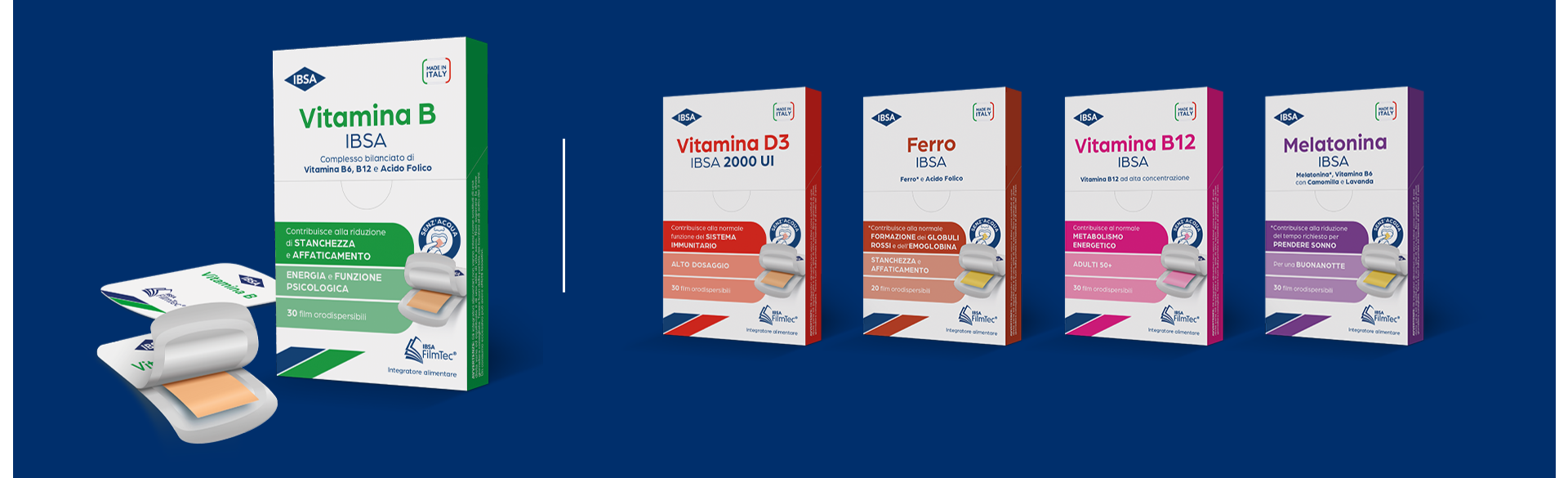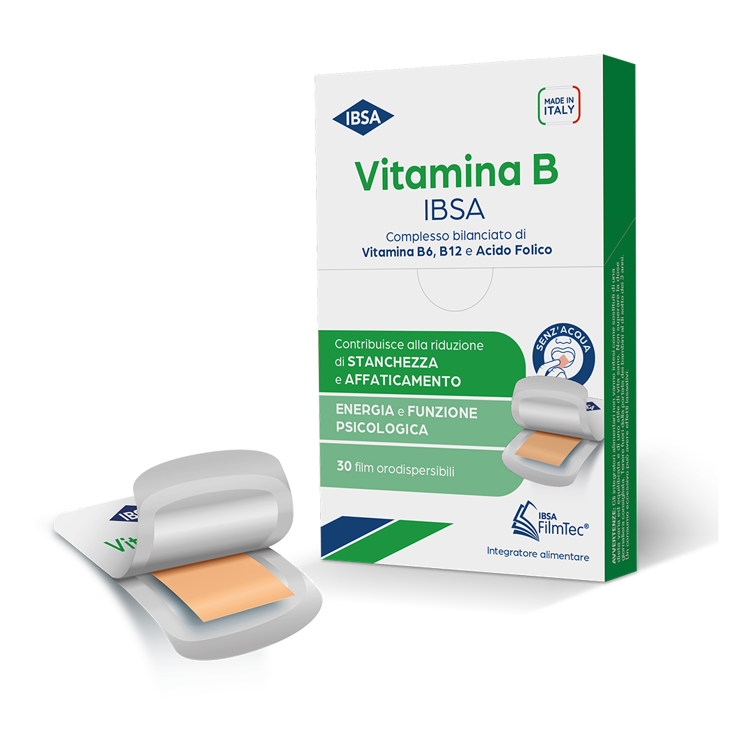 Grazie alla tecnologia IBSA FilmTec®, l’Integratore Vitamina B IBSA si assume facilmente, in pratici film ultrasottili e senza bisogno d’acqua.